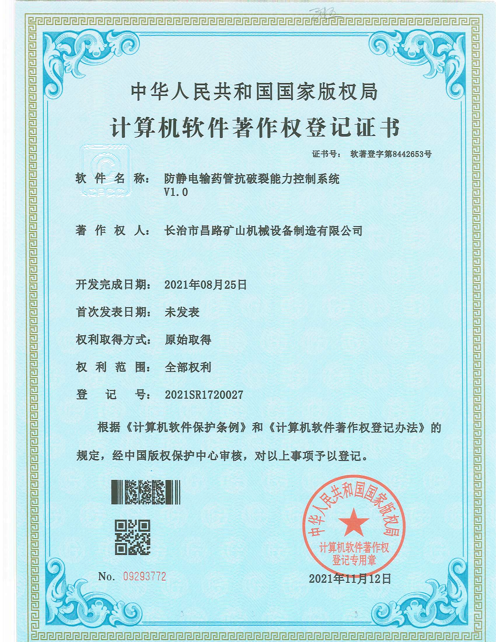 我公司取得軟件著作權登記證書
