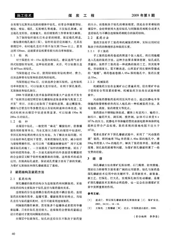 煤礦深孔爆破鉆孔裝藥技術(shù)應(yīng)用